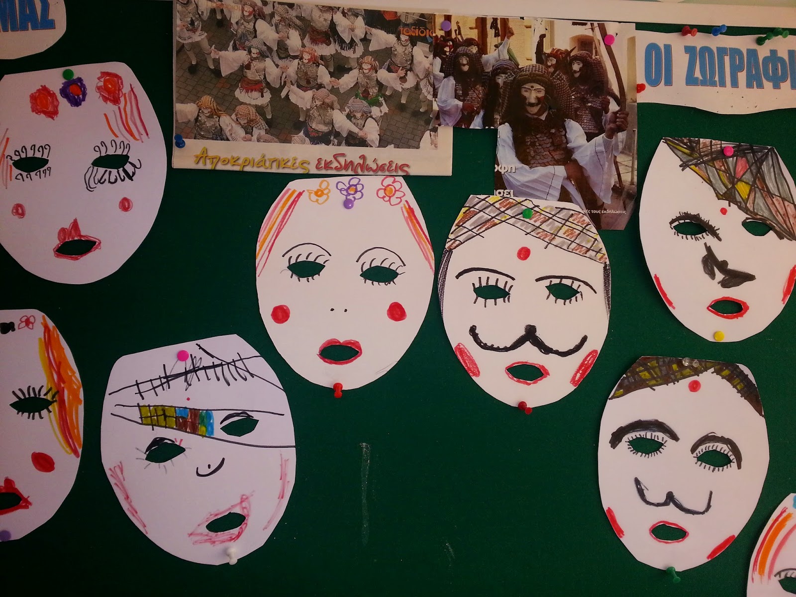 Μιλήσαμε με τα παιδιά για το παραδοσιακό καρναβάλι στην Ελλάδα και εστιάσαμε περισσότερο στη Νάουσα και στο έθιμο του Γενίτσαρου και της Μπούλας . Είδαμε εικόνες , περιγράψαμε τα ρούχα και τις μάσκες τους ,ακούσαμε σχετικό τραγούδι για το ντύσιμο του Γενίτσαρου και παρακολουθήσαμε από το διαδίκτυο σχετικό video με τραγούδια και χορούς . Στο τέλος τα αγόρια έφτιαξαν το δικό τους Γενίτσαρο και τα κορίτσια τη δική τους Μπούλα .
